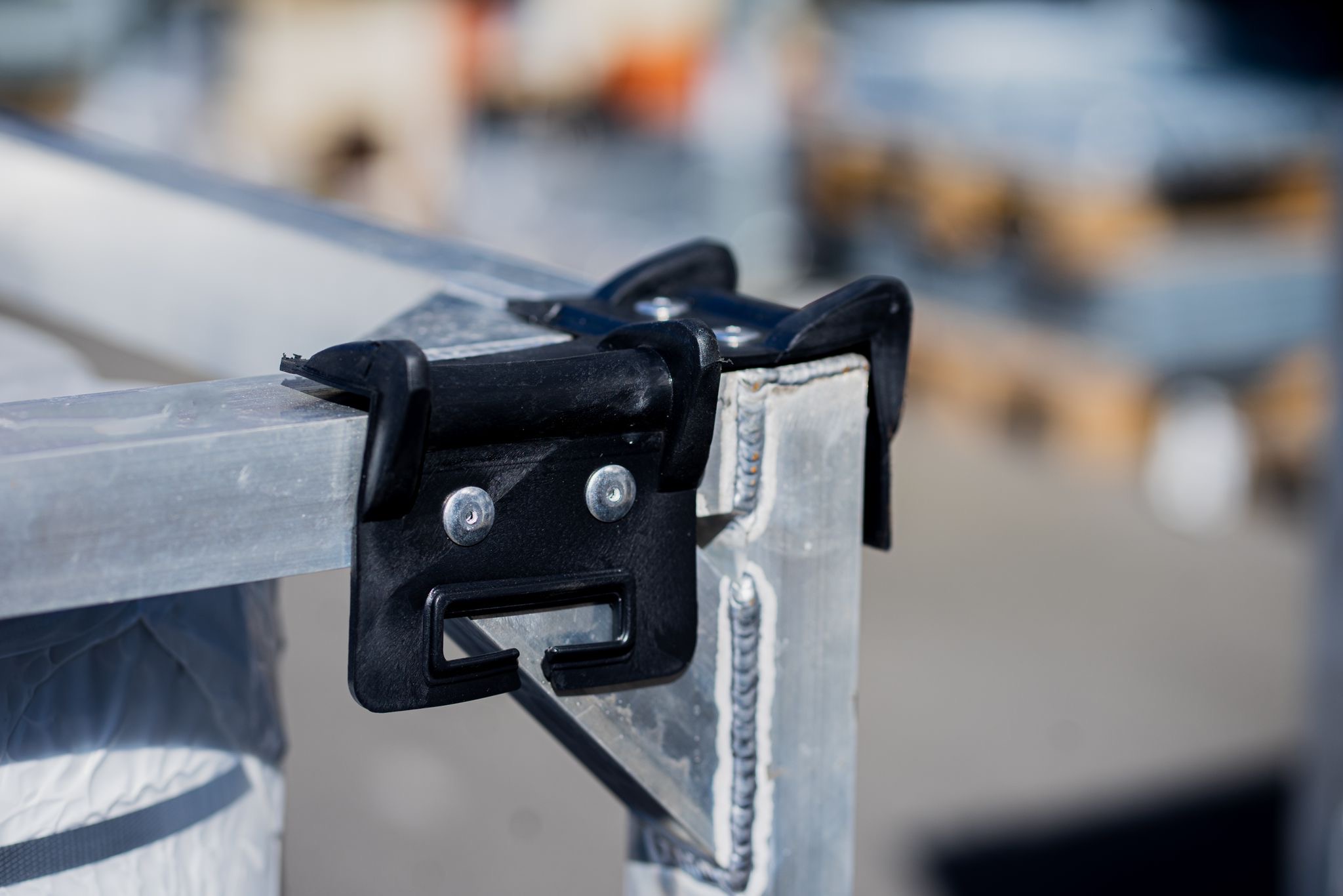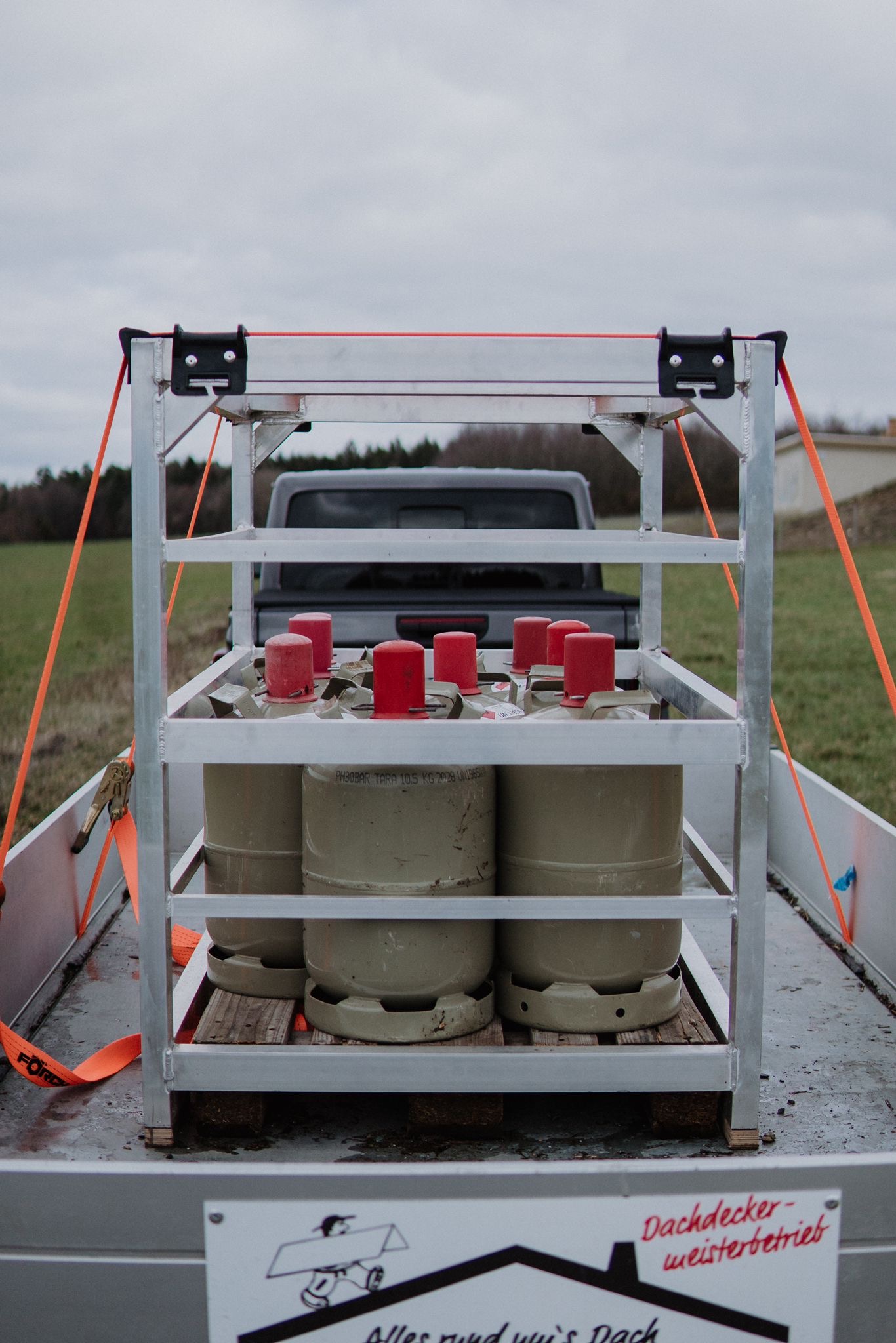 In der Bau- und Handwerkerbranche ist es bekannt, dass Material – von der Schweißbahn bis zum Farbeimer – bei der Verladung, Lagerung und bei dem Transport gerne mal beschädigt wird. Durch das speziell entwickelte Transportsicherungssystem, bestehend aus einer leichten Box aus Aluminium mit zusätzlichen Sicherungsoptionen, gelingt jede Verladung, Lagerung und sogar der Transport ohne jegliche Beschädigung des Materials. Das System ist für eine Bandbreite an Wirtschaftsbetrieben geeignet vom Dachdecker zum Transportieren von Material bis zur Brauerei zum Bewegen und Verladen von Bierfässern.